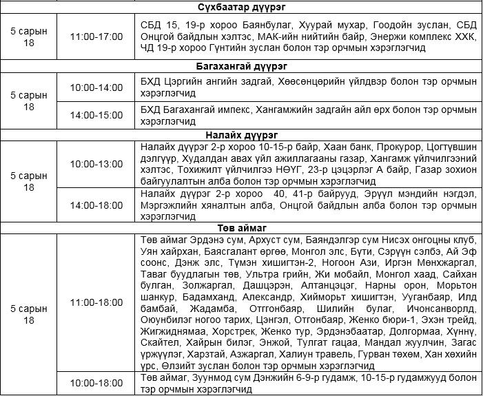 /Мөн тодорхой шалтгааны улмаас засварын хуваарьт өөрчлөлт орох тохиолдолд хангагч байгууллагаас зарыг дахин хүргэнэ/
