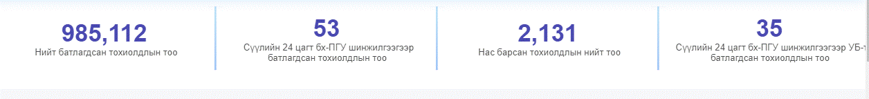 Үүнээс 35 нь Улаанбаатарт, 18 нь орон нутагт бүртгэгдсэн байна. Ингэснээр нийт бүртгэгдсэн халдварын тоо 985,112 боллоо.